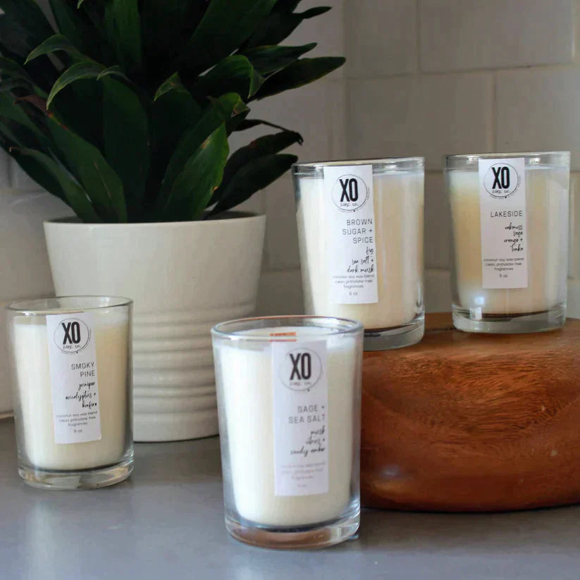 Clear glass jars are an XO Wax Co. favorite. They’re a bit smaller than they look in photos - about 7 ounces. Think of those little juice jars that your grandma uses, they’re that size! These beauties feature a heavy glass base and look great in any setting.